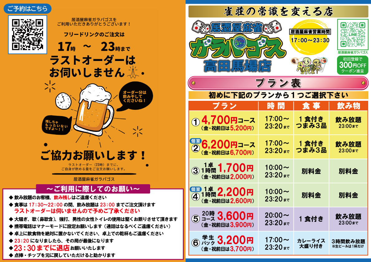 また17:00からはガラパゴス名物『居酒屋麻雀』を楽しめます。